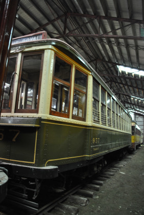 Azienda Tranvie ed Autobus del Comune four-wheel tram 279 built by Tabanelli in 1914. The Eternal City of Rome is represented in Seashore's collection by 279, a diminutive single-truck composite steel and wood car. Donated to the Museum in 1960 by the Mayor of Rome, it was Seashore's first car from continental Europe. The car is a good largely-unmodified example of the ruggedly-built single-truck tram, designed to haul one or two trailers that was common throughout Europe until larger cars gradually came into general use after the mid-1950's.