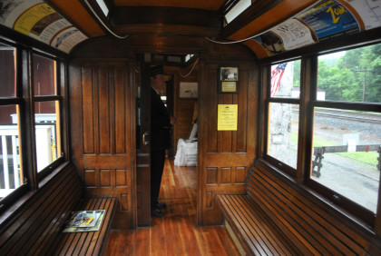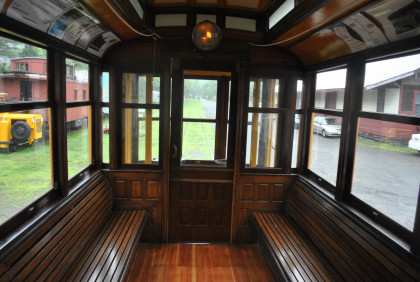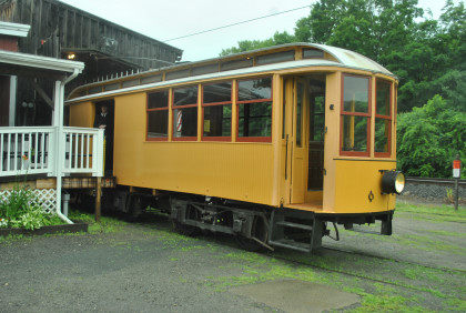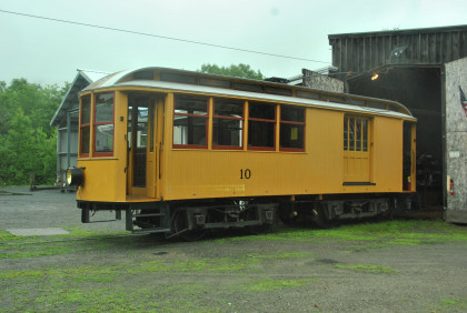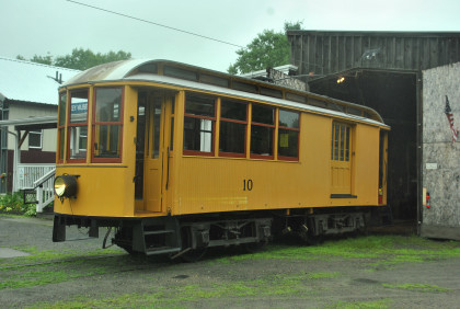 The beautiful Shelburne Falls and Colrain Street Railway suburban combine streetcar 10, built by Wason Manufacturing in 1896.