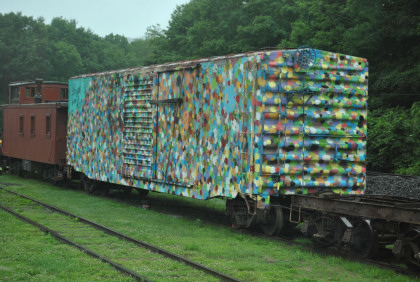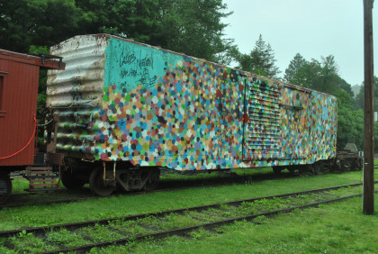 Have you ever seen a box car like painted like that? This is Boston and Maine 776 built by Pullman-Standard in 1956 and went through a couple of iterations of murals and polka dots before being restored.