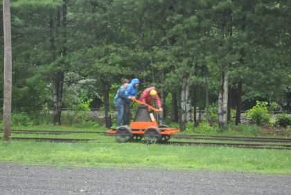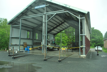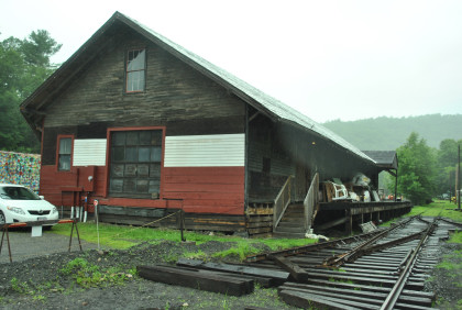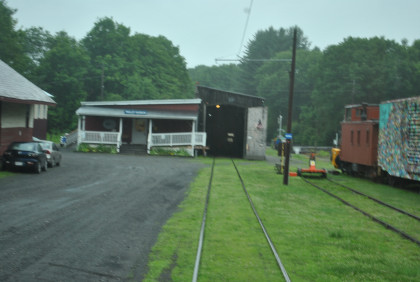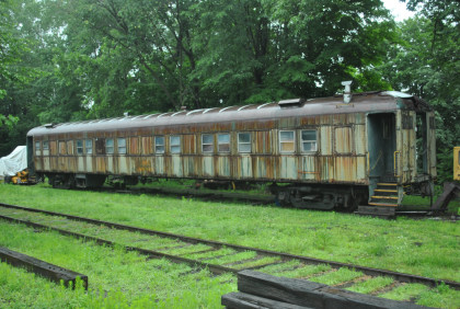 Central Vermont wooden caboose 4015 built by the railway in 1910 and worked between St. Albans and New London, Connecticut, passing through western Massachusetts regularly. It was sold to the Green Mountain Railroad before being retired in 1978 to be used as a poolside cabin in Amherst, Massachusetts. It came to the museum in 2000, and is being restored.