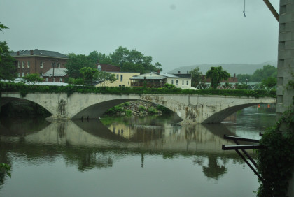 First the Bridge of Flowers which once carried the trolley over the river here in Shelburne Falls.