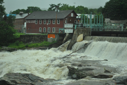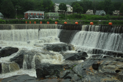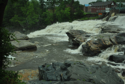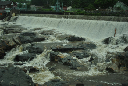 Our last stop was at Shelburne Falls itself, which is a set of low-angle cascades and slides in a sunny, open area. The main falls, at five feet tall, are actually wider than they are tall. The river dumps into a shallow pool of often murky water. The angle of descent is low enough that whitewater kayakers will occasionally run over the falls.