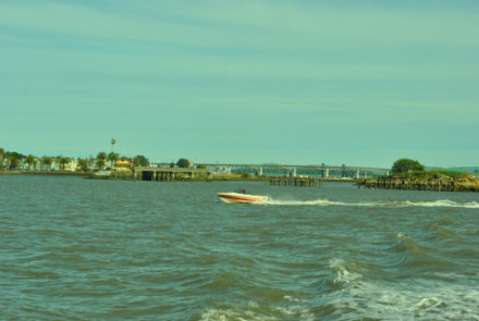 The Loose Caboose boat headed back across the Carquinez Strait.