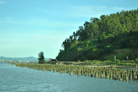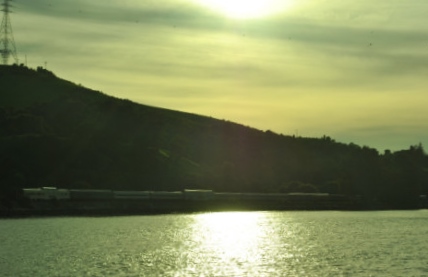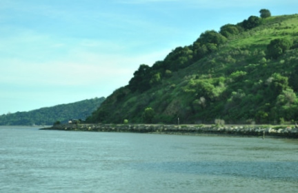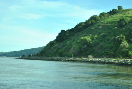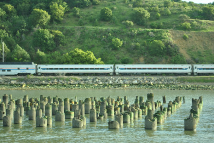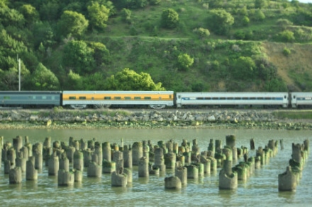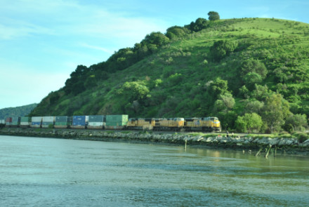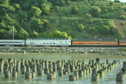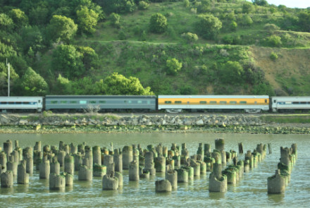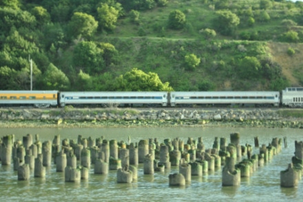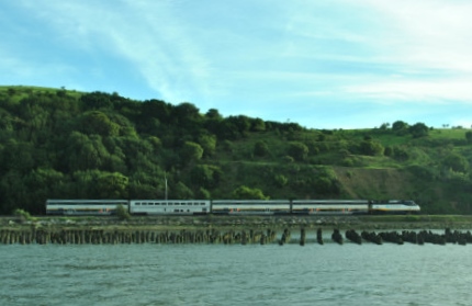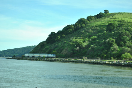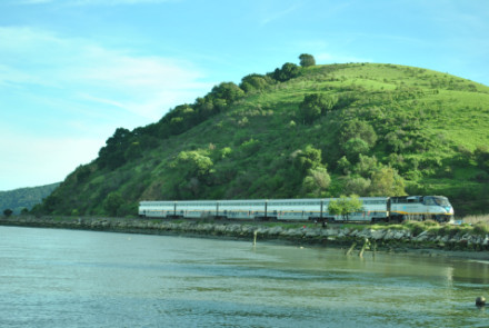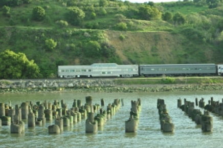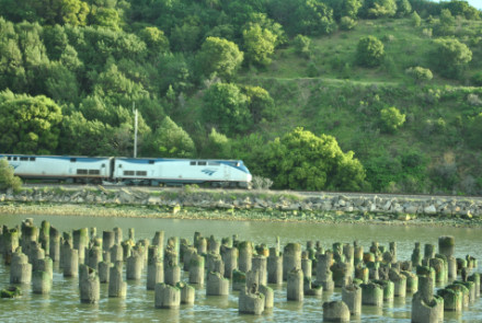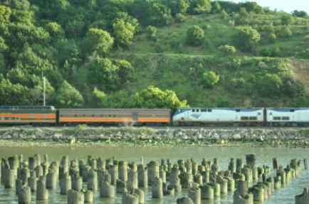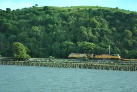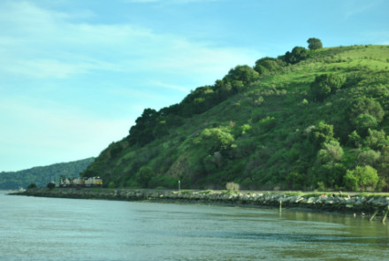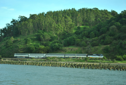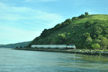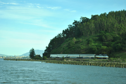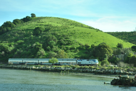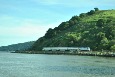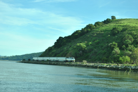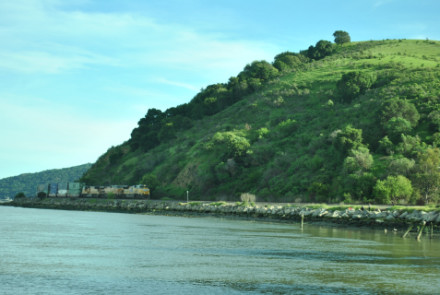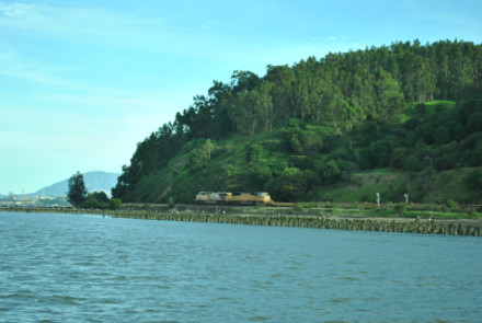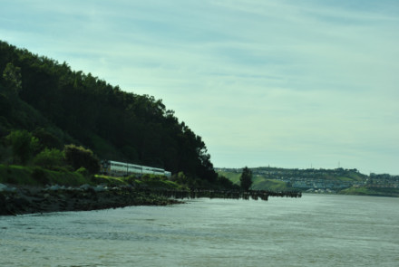 Amtrak Capitol Corridor train 747 along the shore east of Crockett.