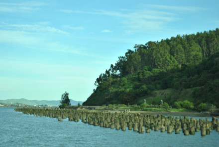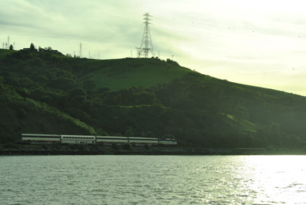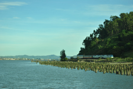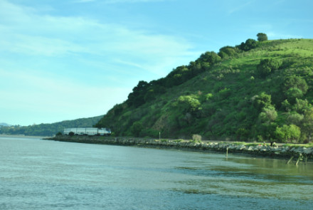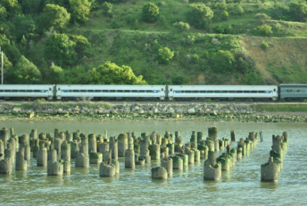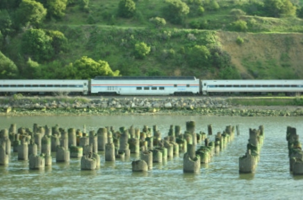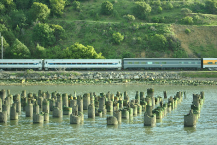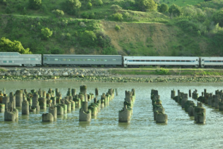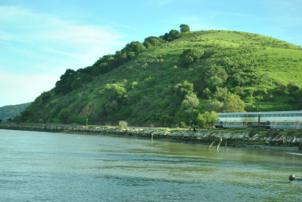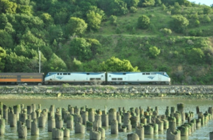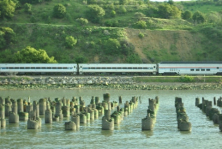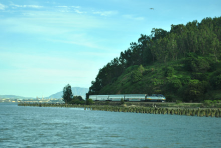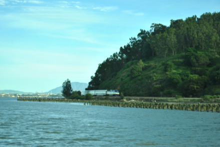 Amtrak Capitol Corridor train 742 along the shore west of Martinez.