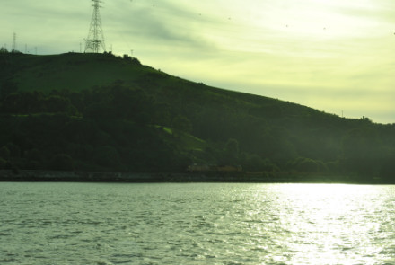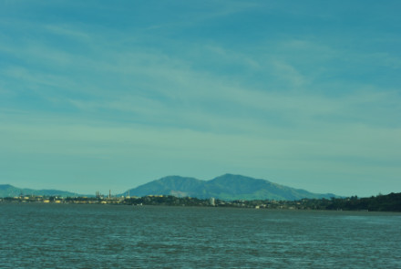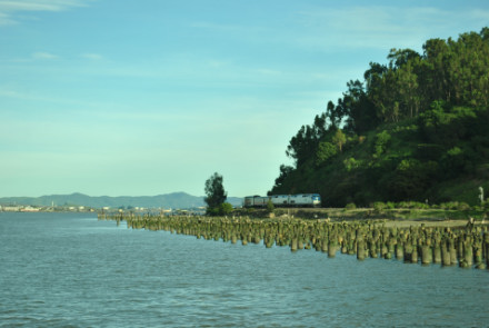 Amtrak Capitol Corridor train 745 along the shore west of Martinez.