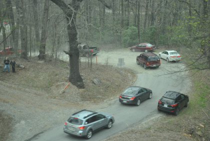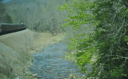 One last view down. We went through Mud Cut, the 123 foot Jarrett's Tunnel, the 589 foot Licklog Tunnel, the 77 foot McElroy Tunnel, the 494 foot High Ridge Tunnel, then 250 foot Burgin Tunnel, followed by the 1,832 foot Swannanoa Tunnel, which passes beneath the Eastern Continental Divide.