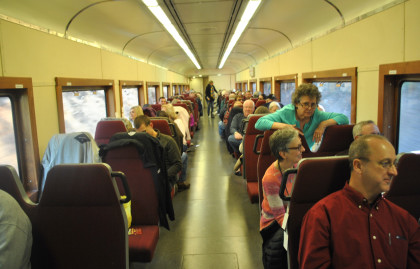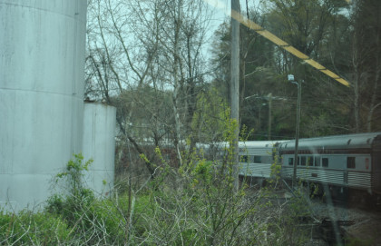 Later the curve near MP 85. Good conversions were had with car attendants and passengers, but we were delayed in our access to the Norfolk Southern mainline in Salisbury. Once there, David and I moved to Car 17 so we could make a quicker escape. We stopped, then Norfolk and Western 611 reversed the train into the North Carolina Transportation Museum grounds and we ended two days of Norfolk and Western 611 trips at our arrival at 10:45 PM.