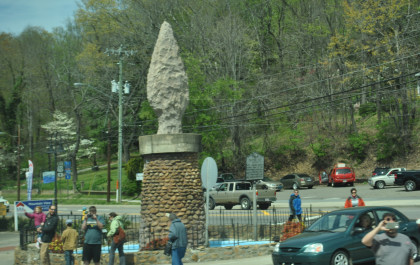 The Arrowhead Monument in Old Fort, North Carolina. This town square is defined by a 30-foot-tall arrowhead hand-chiseled in granite. The landmark was unveiled to a crowd of more than 6,000 people on July 27, 1930 by Marie Nesbitt as a symbol of the peace achieved in an earlier century between pioneers and Native Americans. The train always stopped here. For many years, travelers through these mountains looked for the familiar sight of a tall, hand-carved arrowhead in front of the depot, signaling a stop in the historic town of Old Fort. As one of the oldest towns in the region, it prides itself on its historic roots. Originally a fort built by the colonial militia before the Declaration of Independence, the settlement served for many years as the western-most outpost of the early United States. In those days, it was also the site of many skirmishes between pioneer settlers and Native Americans. Much of the fighting, in fact, took place on the banks of Mill Creek, which runs through the center of town. Many years later, a monument was built to the peace finally made between the two peoples.