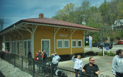 The railfans, families and many passengers, including David, were trackside to watch Norfolk and Western 611 wye the train.