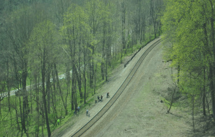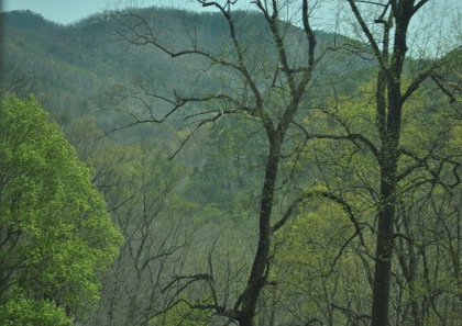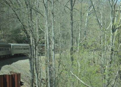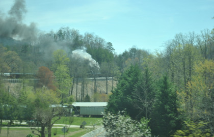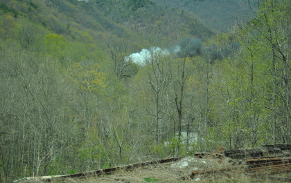 We could follow the smoke from Norfolk and Western 611 as we climbed.