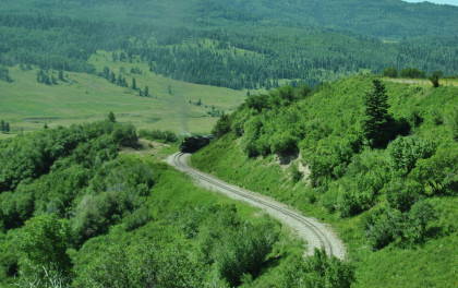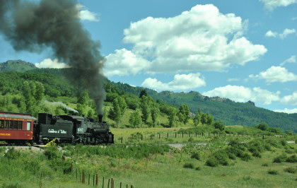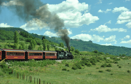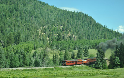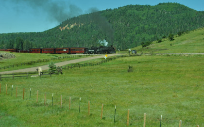 At a grade crossing just below Colorado Highway 17, we took our final pictures of our fantastic chase of the Cumbres and Toltec Scenic Railroad then made our way to Antonito.