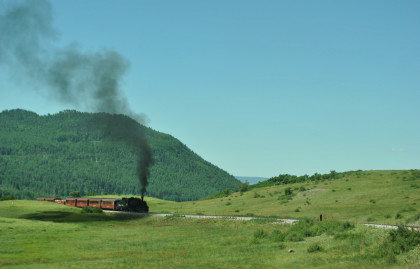 Here is the train crossing the Lobato Trestle.