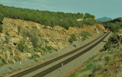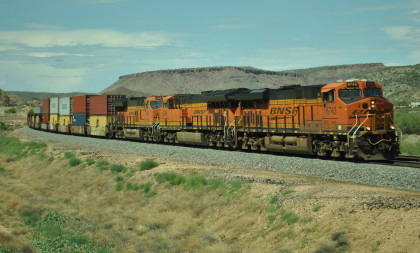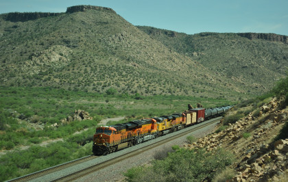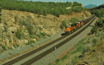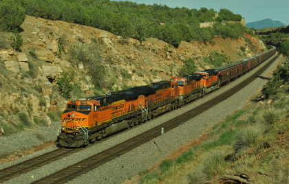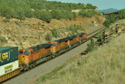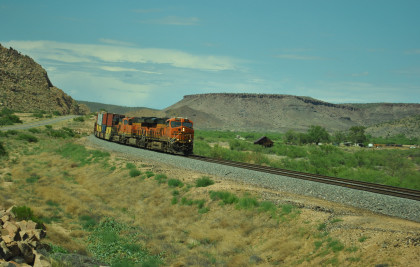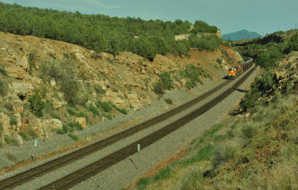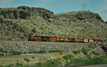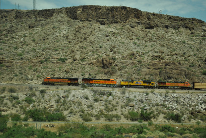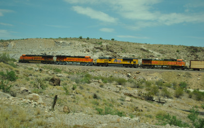 My first train of the day was BNSF 7021 East. We moved futher east in Kingman Canyon.