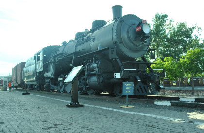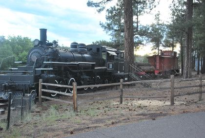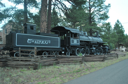 Southwest Lumber Mills Incorporated 2-6-6-2 12 built by Baldwin in 1929 as Hammond Lumber Company 6 in Mill City, Oregon. In 1931, the company re-numbered the locomotive 12 when it moved to a mill in Samoa, California. After twenty-two years with the company, 12 was then sold in 1951 to the Arcata & Mad River Railroad in Blue Lake, California. In 1956, it moved to Southwest Lumber Mills in Flagstaff. For a time, Southwest ran 12 with a large tank car as an auxiliary tender. After adding a normal rectangular tender, the original fuel bunker was removed but the tanks retained. In 1959, when Southwest Lumber Mills became Southwest Forest Industries, 12's two saddle tanks were removed. Southwest Forest Industries donated the steam engine to Coconino County in 1960 and it initially went on display in Coconino County Park in Flagstaff. In 1994, it was moved to its current location at the Pioneer Museum.