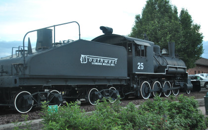 Southwest Lumber Mills Incorporated 2-8-0 25 built by Baldwin in 1911 for Arizona Lumber & Timber Company. In 1941, it was leased to Saginaw & Manistee Lumber Company as their 25 and ten years later, re-numbered 2. In 1953, it was the subject of a corporate sale to Southwest Lumber Mills, Inc. 2 and in 1959, the company's named change to Southwest Forest Industries, Inc. 25.