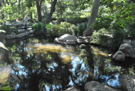 From the El Dorado Express, Robin and I drove northwest to Flintridge and our next stop of the day. We parked in the lot and I had called them so when we arrived at the ticket windows, our tickets were waiting for us. We made a restroom stop before starting to explore Descanso Garden.