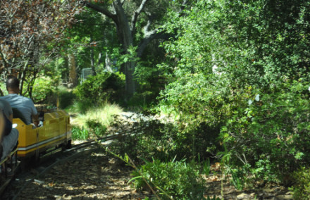 Enchanted RailroadTake a light-hearted look at Descanso Gardens from a 1/8th-scale replica of a diesel train. The Enchanted Railroad is a Descanso icon, delighting young and old who climb aboard. The railroad travels a section of the Gardens near the Promenade. The Descanso Gardens Enchanted Railway is 7 1/2" gauge.