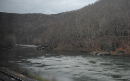 4/7/2016 I got up and went to the dining car for breakfast. Seated with my friend from last night, I enjoyed three pancakes and sausage. While I was out of my room, Larry made it up for day use and I returned as we were running along the Younghiogheny River.