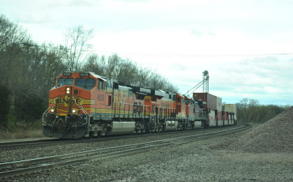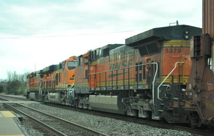 BNSF 4538 East came through La Plata slow but did not reset the crossing gates. Tom Anderson came down to see me off and it was good to talk with him before my train arrived one hour and six minutes late.