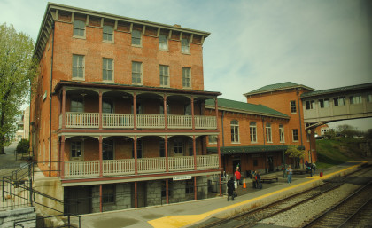 The Narrows where Chris Parker and I rode the Western Maryland Scenic Railroad. We arrived in Cumberland and I detrained for a picture.