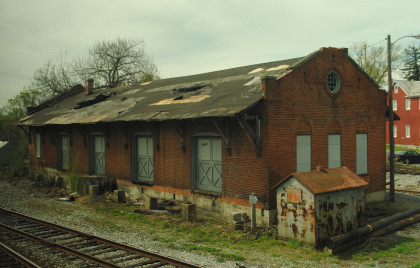 Baltimore and Ohio freight house built in 1881. The train left Martinsburg at 11:32 AM {11:01 AM} and headed east to Harpers Ferry, our next stop on this trip.