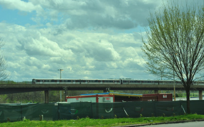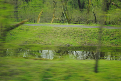 The Chesapeake and Ohio canal. The towpath is a bicycle trail that runs from Washington, DC to Pittsburgh. We ran slow to MP 39 where we crossed over before our next station stop at Rockville, from which we departed at 12:47 PM {12:21 PM}. From here we ran into Washington Union Station where we arrived at 1:15 PM {1:05 PM}.