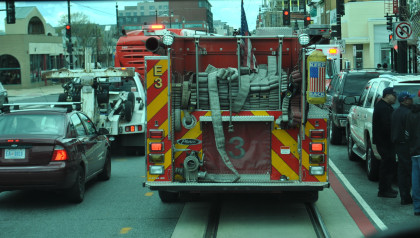 My DC Streetcar returned to the Oklahoma Avenue/Benning Road station. Now sit back and take a ride looking backwards for most of the trip including a ten minute delay because of a fire truck and ambulance parking on the tracks rescuing person in a store.