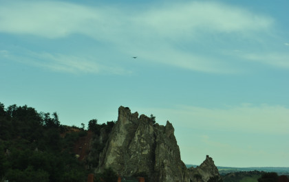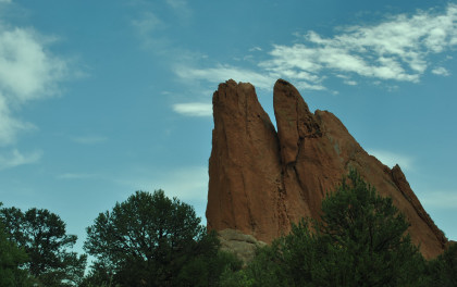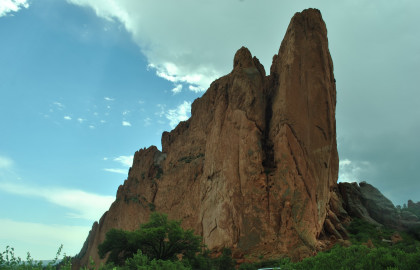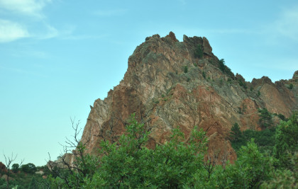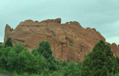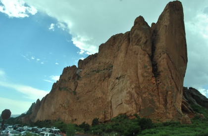 is not allowed when the rocks are wet or icy. There are fines for unregistered climbers and possibly rescue costs. Several fatalities have occurred over the years, generally because the climber was not wearing safety equipment or the equipment failed. The Garden of the Gods Visitor and Nature Center is located at 1805 N. 30th Street and offers a view of the park. The center's information center and 30 educational exhibits are staffed by Parks, Recreation and Culture employees of the City of Colorado Springs. A short movie, How Did Those Red Rocks Get There?, runs every twenty minutes. A portion of the proceeds from the center's privately-owned store and cafe support the non-profit Garden of the Gods Foundation; the money is used for maintenance and improvements to the park. Natural history exhibits include minerals, geology, plants and local wildlife as well as Native Americans who visited the park. Programs include nature hikes and talks, a Junior Ranger program, narrated bus tours, movies, educational programs and special programs. The Garden of the Gods Park and Visitor and Nature Center are free to the public. As of July 2013, the park hours are 5 a.m. to 11 p.m. from May 1 to October 31; 5 a.m. to 9 p.m. from November 1 to April 30. The Visitor and Nature Center is open 8 a.m. to 8 p.m. from Memorial Day weekend through Labor Day weekend; the remainder of the year it is open from 9 a.m. to 5 p.m. We drove in to the park but the rain stopped us from taking pictures until we got to the east side of the park. Kindergarten Rock. Sleeping Giant. Looking back towards Colorado Springs. We drove the loop around the park to the north side then parked in a lot. The base of South Gateway Rock. South Gateway Rock. More views of South Gateway Rock. Cathedral Spires. Keyhole Window. Sleeping Giant. Cathedral Spires. We left Garden of the Gods and drove down Garden of the Gods Boulevard toward I-25. We stopped to fill the car with petrol and drove to Denver and Chris Parker gave me the easiest route to the hotel off I-25. We checked into the Super 8 but found out we had only four nights instead of six. When we got to our room, Elizabeth found us two more nights at the Quality Inn next door, so from an error by Super 8, we will have rooms at the Quality Inn on Friday and Saturday nights. Robin, Elizabeth and I walked over to the Holiday Inn and we picked up our NRHS tickets and guidebooks. Instead of the quality books that Bart Jennings produced for the last four conventions, we were using the Kalmbach Colorado Railroading book which I already had since last November. We walked back and went to Chick-Fil-A and brought dinner back to the room due to an impending thunderstorm. We finished the Cumbres story, watched some television and called it an early night since the internet at the Super 8 was so bad that I could not upload my stories. Tomorrow, we have our first NRHS convention trip to the Royal Gorge and a bus ride each way of two-and-a-half to three hours as bus hosts.