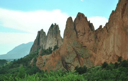 Geological formationThe outstanding geologic features of the park are the ancient sedimentary beds of deep-red, pink and white sandstones, conglomerates and limestone that were deposited horizontally, but have now been tilted vertically and faulted into "fins" by the immense mountain building forces caused by the uplift of the Rocky Mountains and the Pikes Peak massif. The following Pleistocene Ice Age resulted in erosion and glaciation of the rock, creating the present rock formations. Evidence of past ages can be read in the rocks: ancient seas, eroded remains of ancestral mountain ranges, alluvial fans, sandy beaches and great sand dune fields.