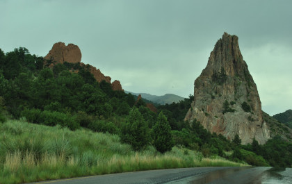 After shooting the picture of the Midland Railroad tunnel, we drove through a very heavy thunderstorm which got rid of most of the dust. We then drove into the Garden of the Gods through the rain but that was not going to stop us.