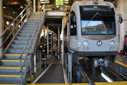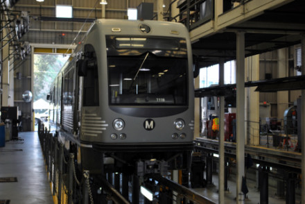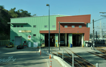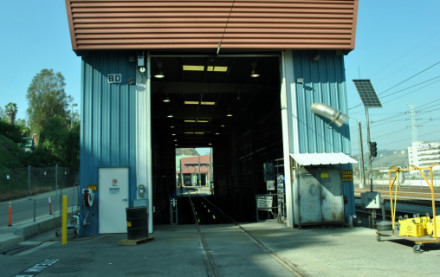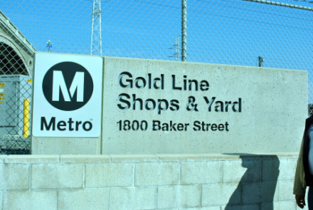 After an excellent BBQ meal at the Canyon City Barbeque in Azusa, the bus took us to the Metro Rail R21 Gold Line Shop entrance in Los Angeles along the Los Angeles River. This was the first Gold Line shop and is being phased out due to its extremely small and limited space, something the R22 Metro Rail Foothill Shop has plenty of room and very well designed by comparsion. But at least we are getting to see where it started. We exited the bus and would walk in to see it all.
