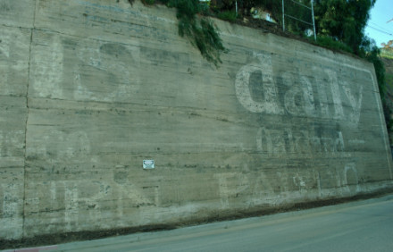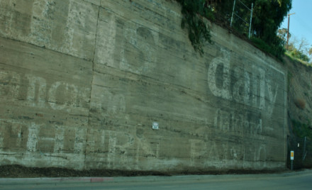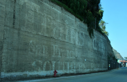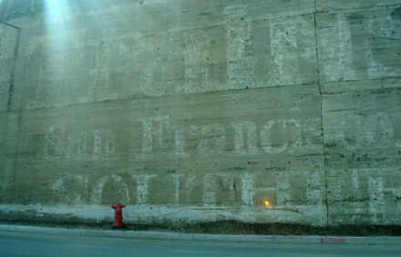 The famous Southern Pacific advertising sign on the wall that was designed so the riders of the old Santa Fe trains could see it and make a choice of trains to take in their future.
