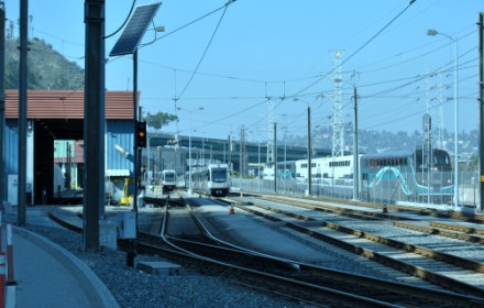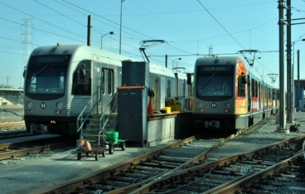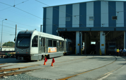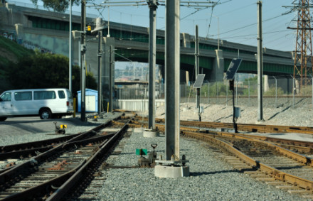 Another Gold Line trolley went by the Metro Rail R21 shops.