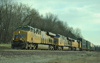 Union Pacific 7975 West at County Road C, MP 285.45 west of Revere. A BNSF crew was going to close the crossing so we left before they did and went to the second bridge west of Revere.