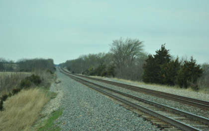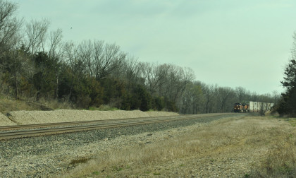 The old smokestack in Gorin was built in 1906 as a facility of the Prairie Oil and Gas Company. From here we went to Powell Road but missed the turnoff. We got to the crossing just missing two more BNSF freights. That is ninth train I missed on this trip.