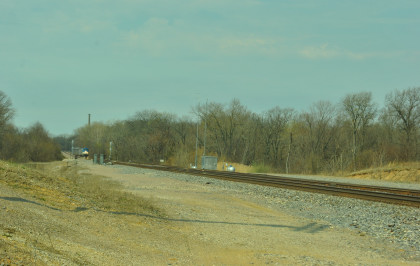 BNSF 5053 West at the second bridge west of Revere. Next we went back to Wyaconda to a new crossing at County Line Road to take pictures and missed another BNSF train as we arrived just a minute too late. With a cold wind and 39 degree temperature we would return here during warmer weather.