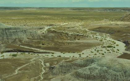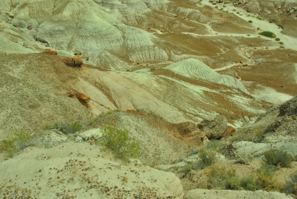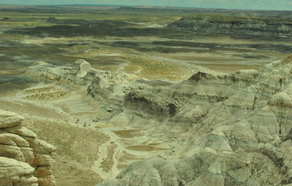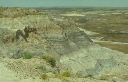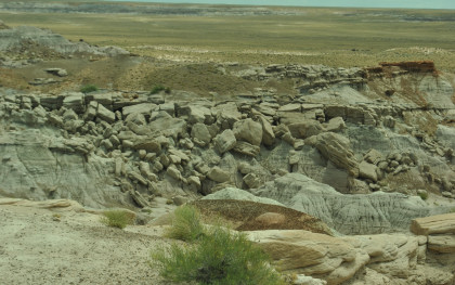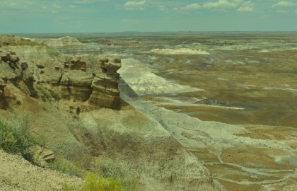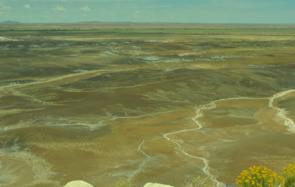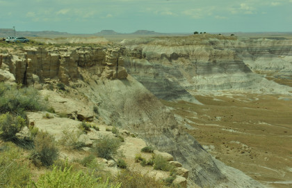 BNSF 7124 West at Manuelito. Robin and I made our way into Arizona and stopped at the rest area then it was back on Interstate 40 to the exit for the Petrified Forest. Since we saw the Painted Desert eastbound, why not visit the Petrified Forest westbound? Robin used his card to get us in and we bypassed the Painted Desert and almost made it to the bridge over the BNSF mainline.