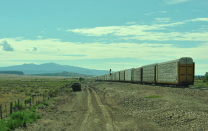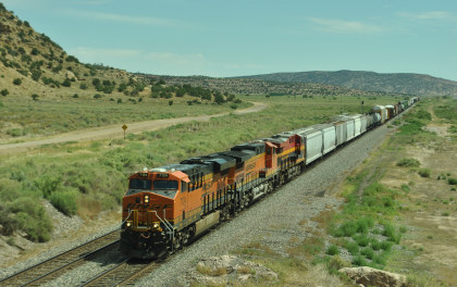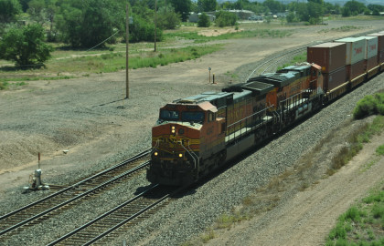 BNSF 7090 East at Baca Road. We drove west but a train caught up to us.