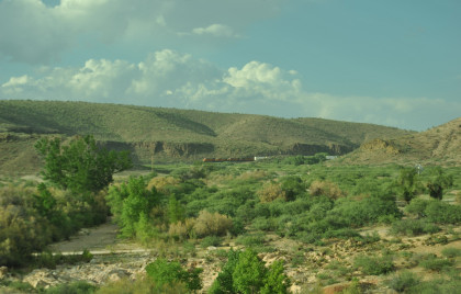 BNSF 5476 West at Maine. We returned to Interstate 40 and the rain became harder and one could only safely drive at 50 mph for the next hour as the good drivers stayed at the below the speed limit and those bad ones flew by. Once I neared Seligman, I decided to leave Interstate 40 for US 66 with a lot less traffic then as we approached Peach Springs and returned to the sunshine, I stopped.