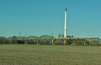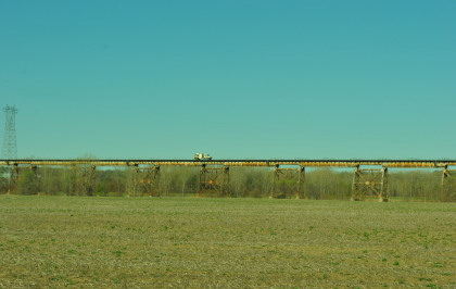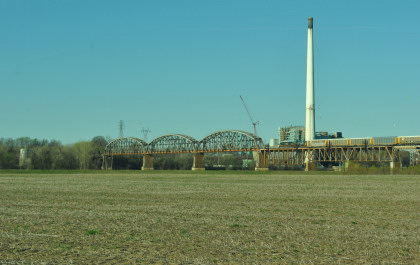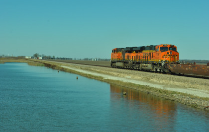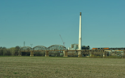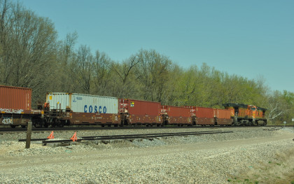 Norfolk Southern 6761 East just east of Dewitt. From here we drove west straight to the Missouri River bridge at East Sibley and pulled up to the photo location just as a westbound BNSF started crossing the impressive bridge here.