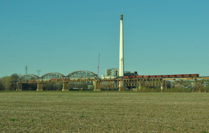 An unknown BNSF train at East Sibley crossing the Missouri River.