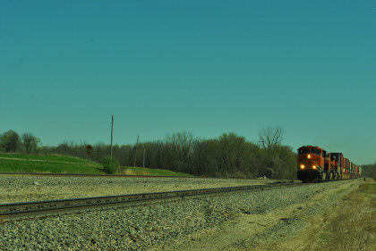 BNSF 7804 West at a road crossing just west of NA Jct.