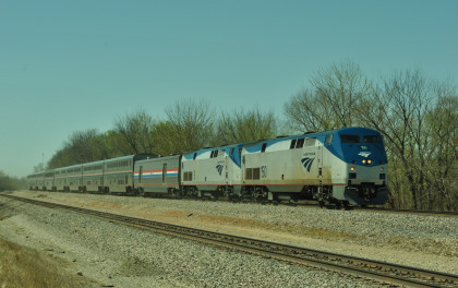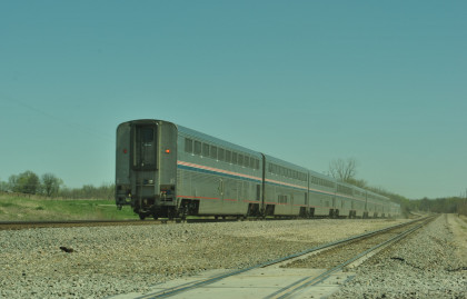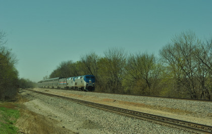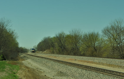 Amtrak Southwest Chief running over 2 hours 39 minutes late due to crew issues after last night's late westbound Southwest Chief at County Road 260 MP 383.17. We left for Rothville but stopped along one of the roads we took.