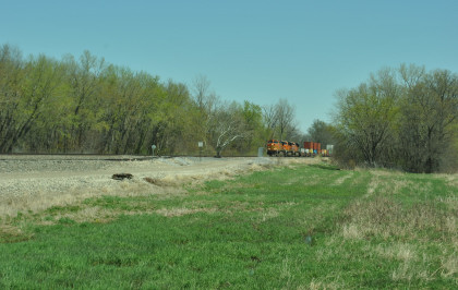 BNSF 6504 west at Hardin from the Missouri Highway 10 overpass. We continued east to a road crossing just west of NA Jct.