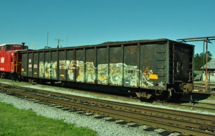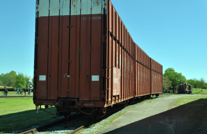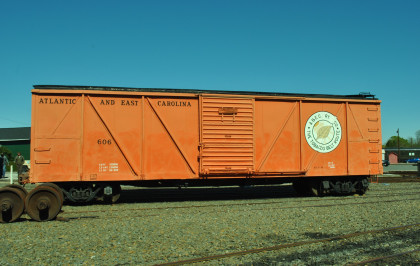 Atlantic and East Carolina outside-braced boxcar 606 originally built in 1930 as a Seaboard wood-sheathed box car and owned by the Atlantic and East Carolina Railway and was rebuilt in 1953 to a steel car. Donated by Norfolk Southern in 181, it was restored in 1996.