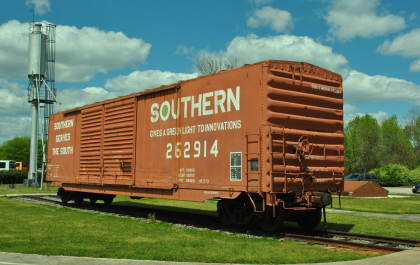 Southern Railway box car 262914 built by Pullman-Standard in 1957. I picked up my ticket and we had another group of school children sitting in the observation car. Since the train's usual route was blocked by our excursion equipment, we ran a modified trip.