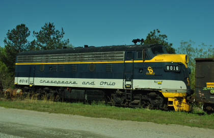 Chesapeake & Ohio F7A 8016 built by Electro-Motive Division in 1948 as Clinchfield 800. It was rebuilt in 1952 and became Seaboard System 800 in 1982. It was re-numbered 116 in 1983 and then CSX 116 in 1987. In 2002 it was sold to the Chesapeake & Ohio Historical Society in Clifton Forge, Virginia, where it was re-liveried as Chesapeake & Ohio 8016. The locomotive is on lease from the Chesapeake and Ohio Historical Society to the Potomac Eagle Scenic Railroad, a shortline tourist operation based in Romney, West Virginia.