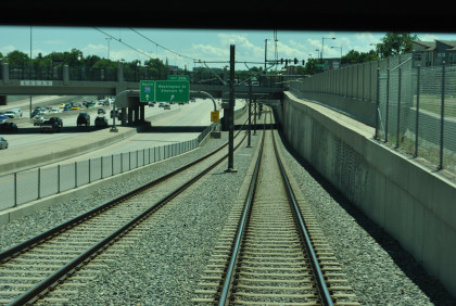 While traffic was bunching up on Interstate 25, we rapidly moved along the tracks to Colorado station.