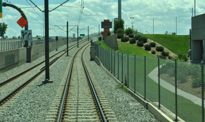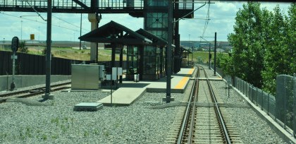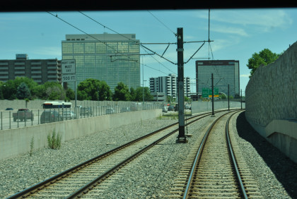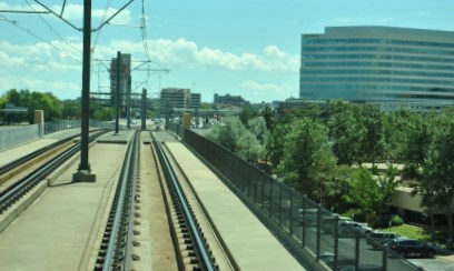 Travelling along the E Line en route to Arapahoe at Village Center station.